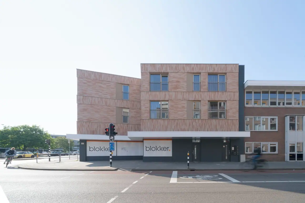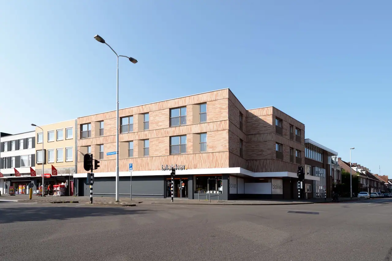 Claver Real Estate heeft het pand gedeeltelijk getransformeerd naar woningen. Blokker heeft de ruimte op de begane grond en een gedeelte van de 1e verdieping nog steeds in gebruik. In het overige deel van het complex zijn 8 appartementen gerealiseerd, voorzien van een gemeenschappelijke daktuin. De bestaande bovenbouw was door de magazijnfunctie gesloten van karakter. De gevel opgebouwd uit keramische tegels vond geen aansluiting met de naastgelegen bebouwing. Voor de nieuwe gevel is gekozen voor een duurzame voorzetgevel met unieke metselwerk details in horizontaal en verticaal metselwerk. Naast de esthetische verbetering is de gevel voorzien van een nieuw isolatiepakket en hoogwaardige kozijnen wat de appartementen het label A+++ geeft. Naast deze isolatiewaarde zijn de nieuwe appartementen ontworpen met verdiepingshoge Franse balkons welke uitzicht geven over het plein