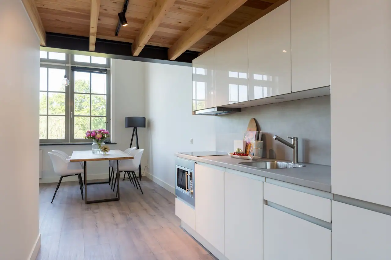 Aan de achterzijde is een liftopbouw gemaakt waardoor de woningen in de kap goed bereikbaar zijn gemaakt. Er zijn PV panelen aangebracht en iedere woning heeft zijn eigen warmtepomp. Op het resterende deel van het schoolplein zijn een grote fietsenberging, speelplaats van het kinderdagverblijf en parkeerterrein gerealiseerd.